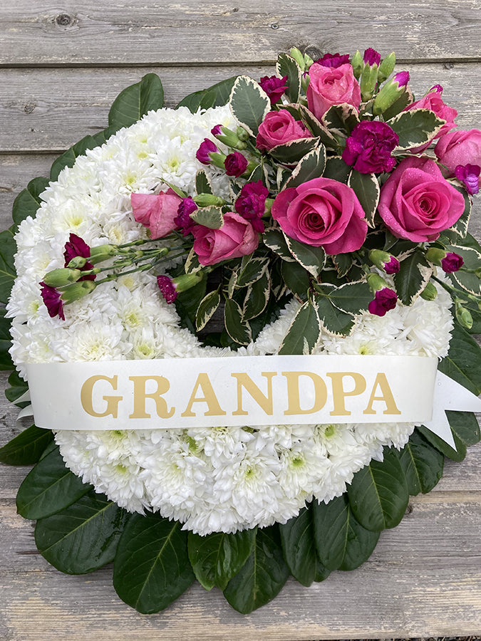 For the closely bereaved, using letters adorned with flowers as a dedication to a particular family member creates a wonderful and meaningful tribute at a funeral. The word MUM, DAD or NAN, in flowers gives a powerful message at the service.