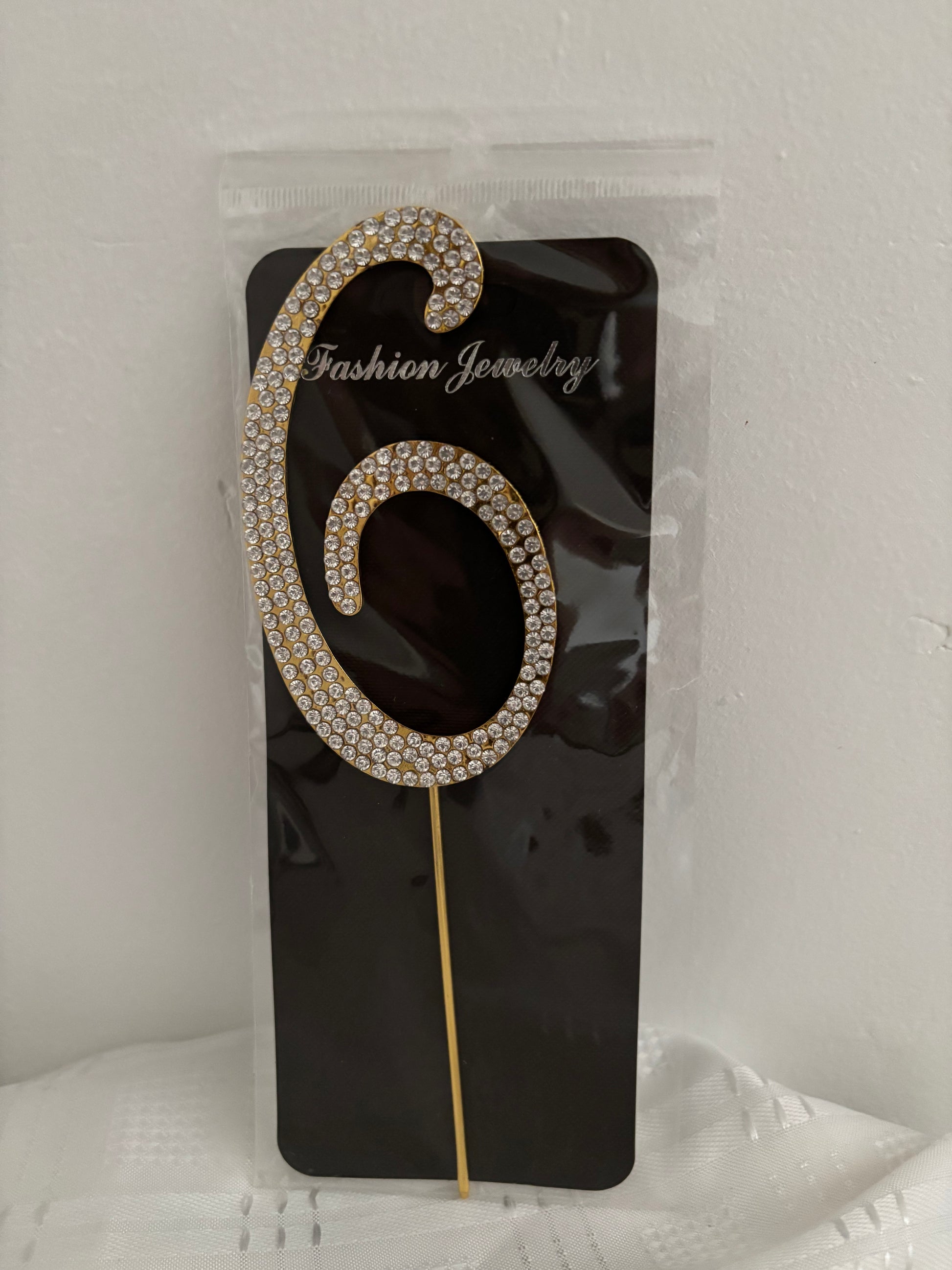 "Number 6" Diamante Cake Topper. Birthday anniversary Cake decoration topper. Table Number