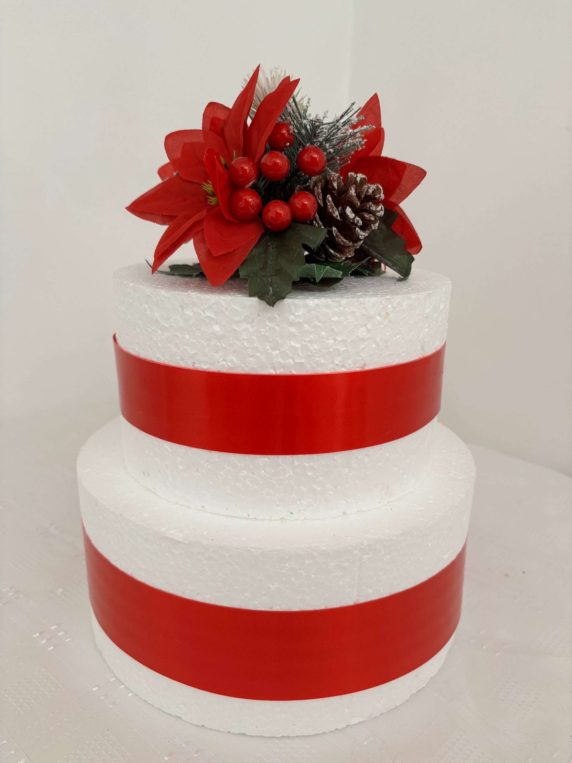 Red Silk Poinsettia flower Pine cone and berry Christmas Cake Topper